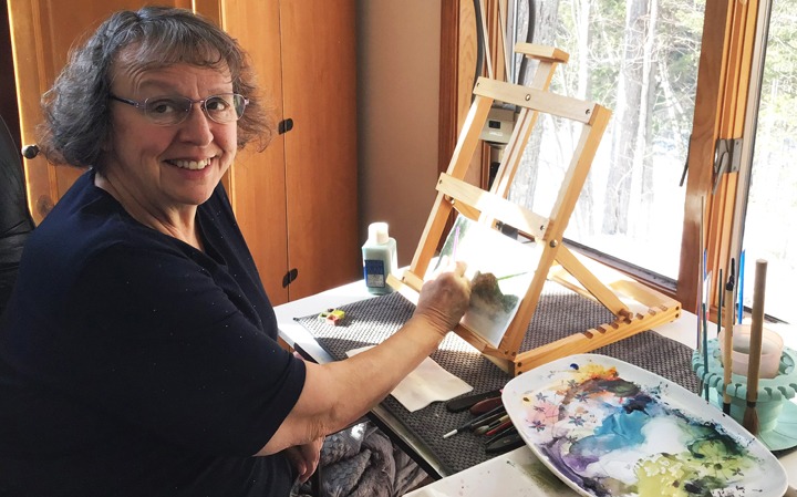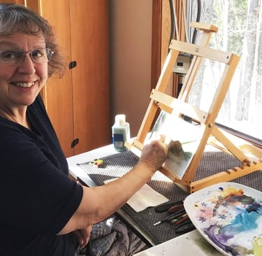 As a retired RN, I spend my days exploring the Upper Peninsula with my husband—fishing, canoeing, hiking, and collecting the rocks and driftwood that become central to my work. I am an active member of a local art league and paint plein air regularly with fellow artists.